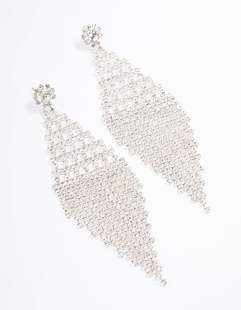 Silver Medium Diamante Cup Chain Drop Earrings Silver Medium Diamante Cup Chain Drop Earrings Silver Medium Diamante Cup Chain Drop Earrings