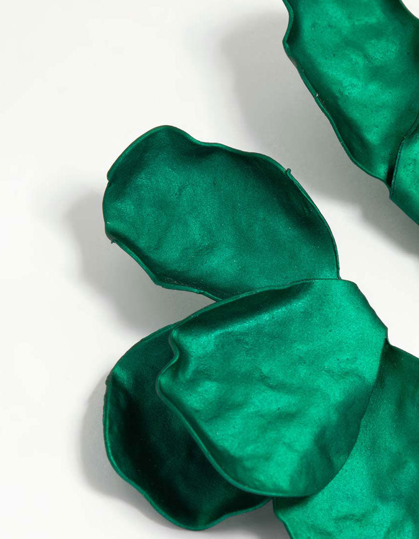 Dark Green Coated Metal Flower Petal Drop Earrings
