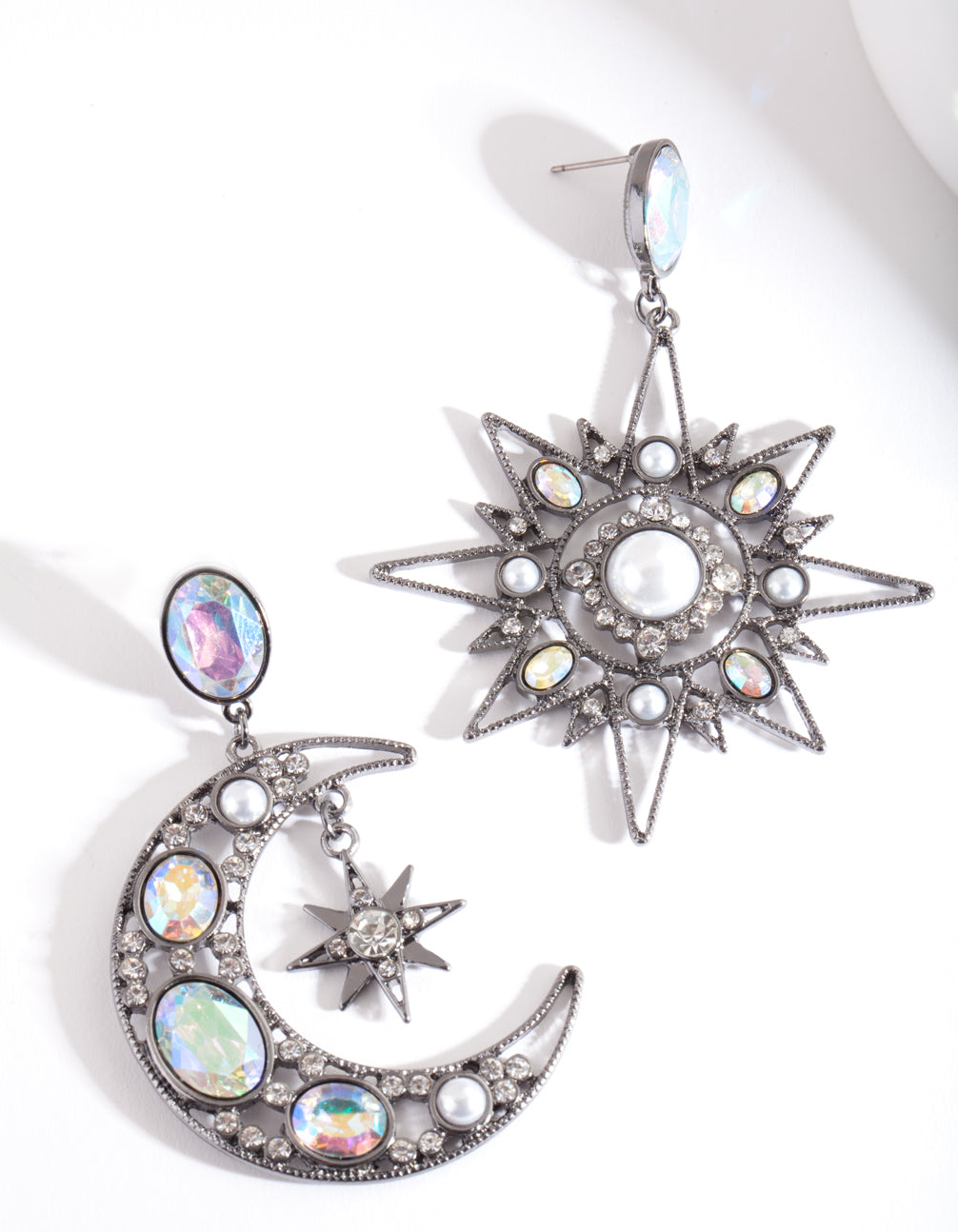 Elevate your look with this gunmetal-toned star and moon asymmetrical earring.