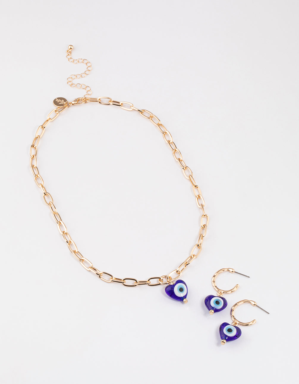 • Blue Evil Eye Heart Earrings & Necklace Set - link has visual effect only