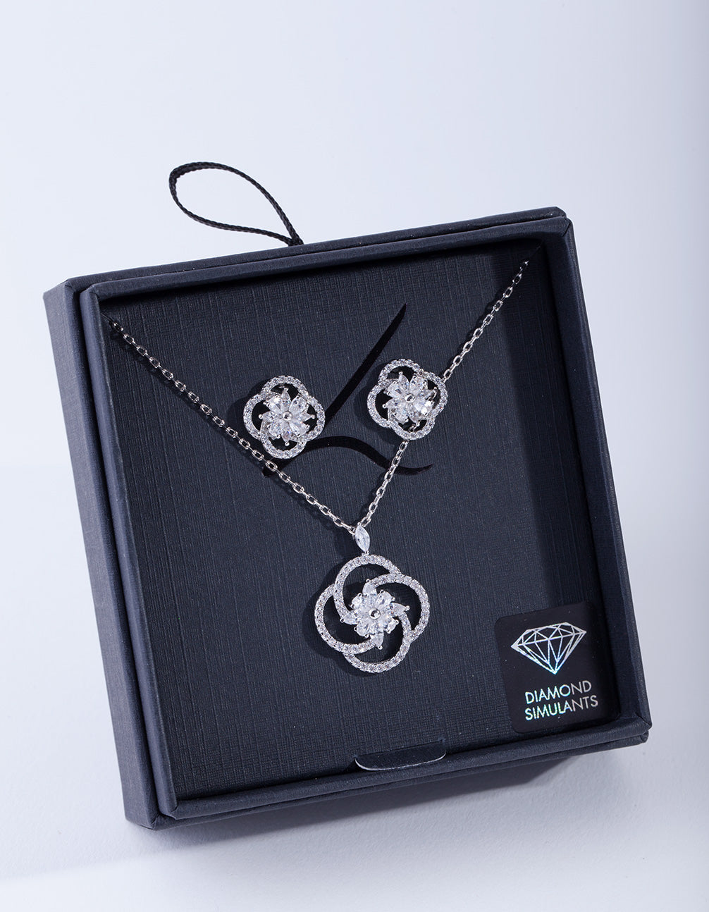 Diamond Simulant Twist Flower Jewellery Set