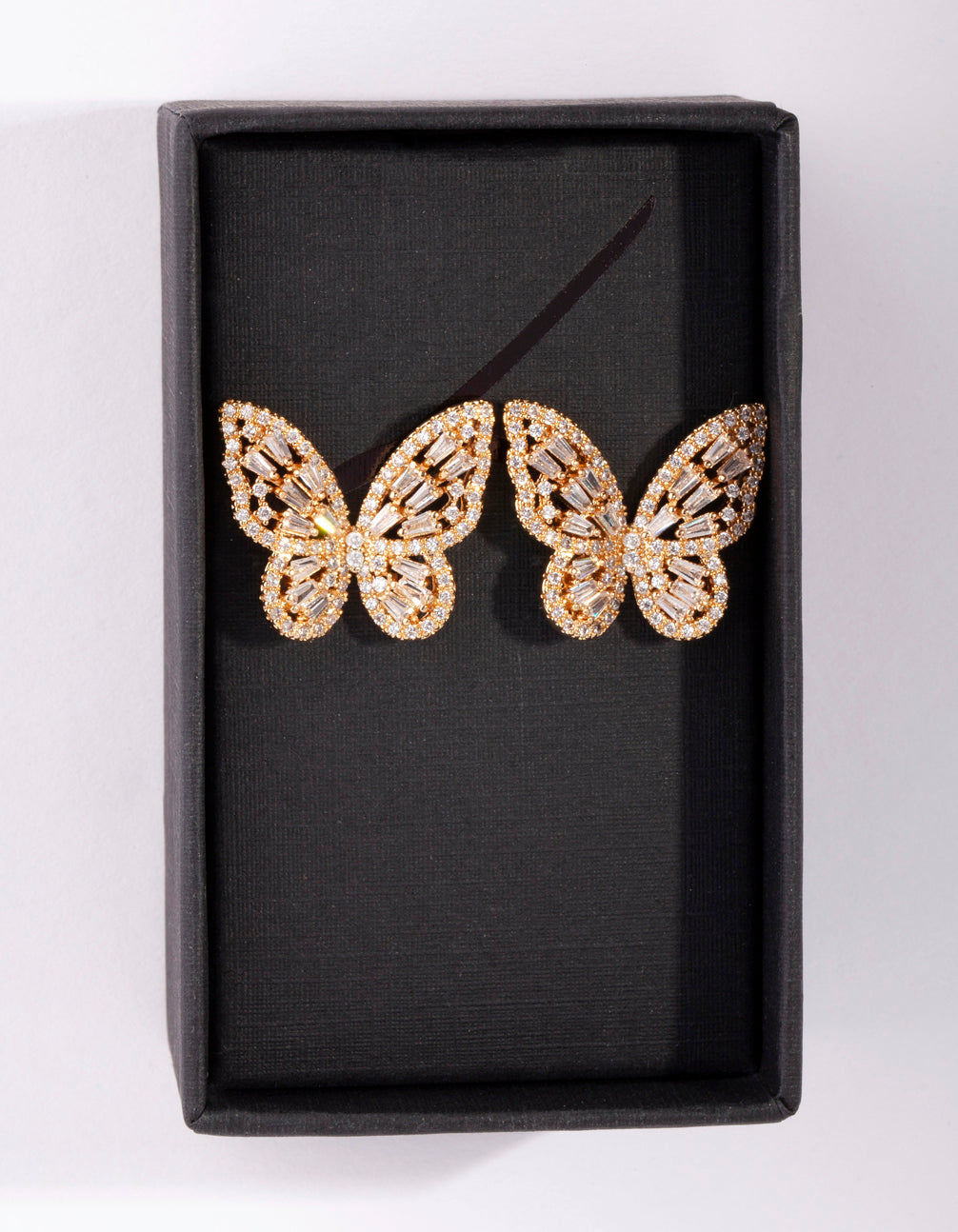 Lovisa diamond simulants are cut to be indistinguishable to the human eye from a true diamond and this pair of butterfly earrings will add some statement glamour to your event ensembles. Pair this gold-toned set of studs with the matching necklace and ring to make an impact.