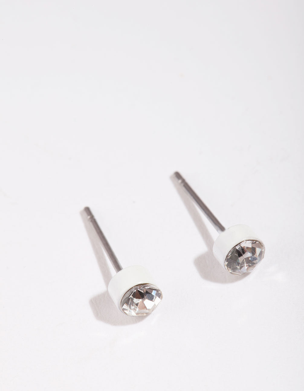 White Diamtante Bezel Stud Earrings