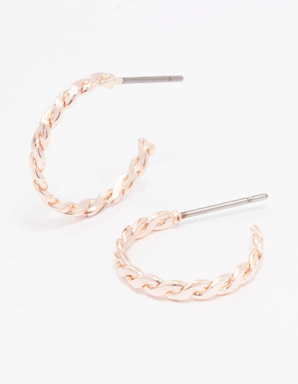 Rose Gold Figure Eight Twisted Huggie Earrings