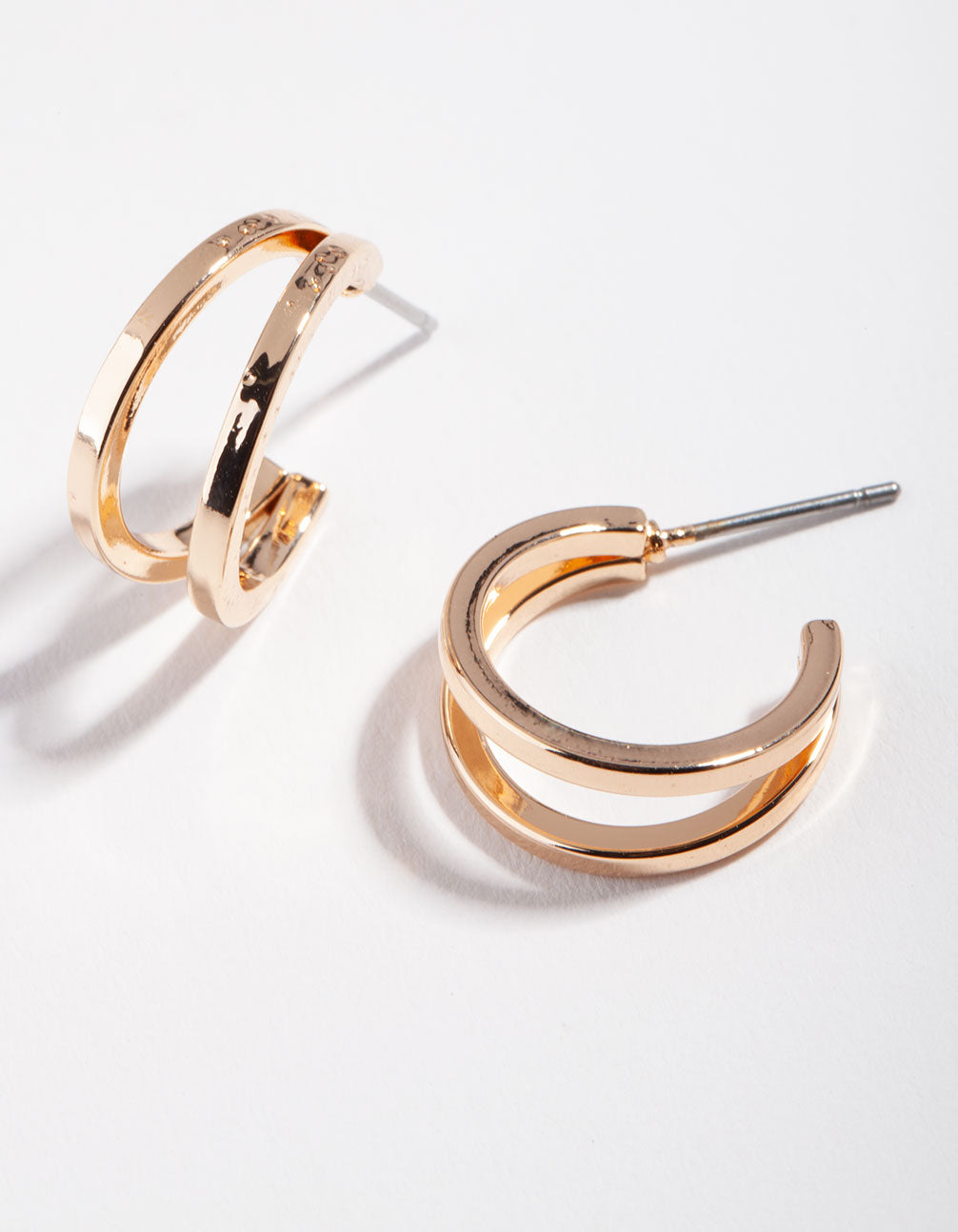 Everyone needs a fashionable pair of hoop earrings! These ones are gold-toned, and have an intricate double hoop design. They can elevate almost any outfit.