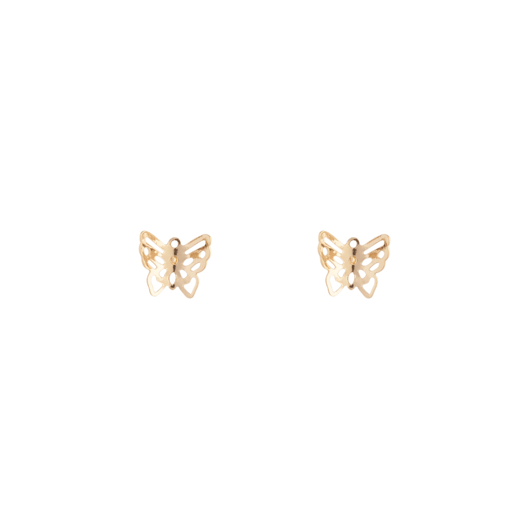 A pair of gold-toned filigree stud earrings in a butterfly design.