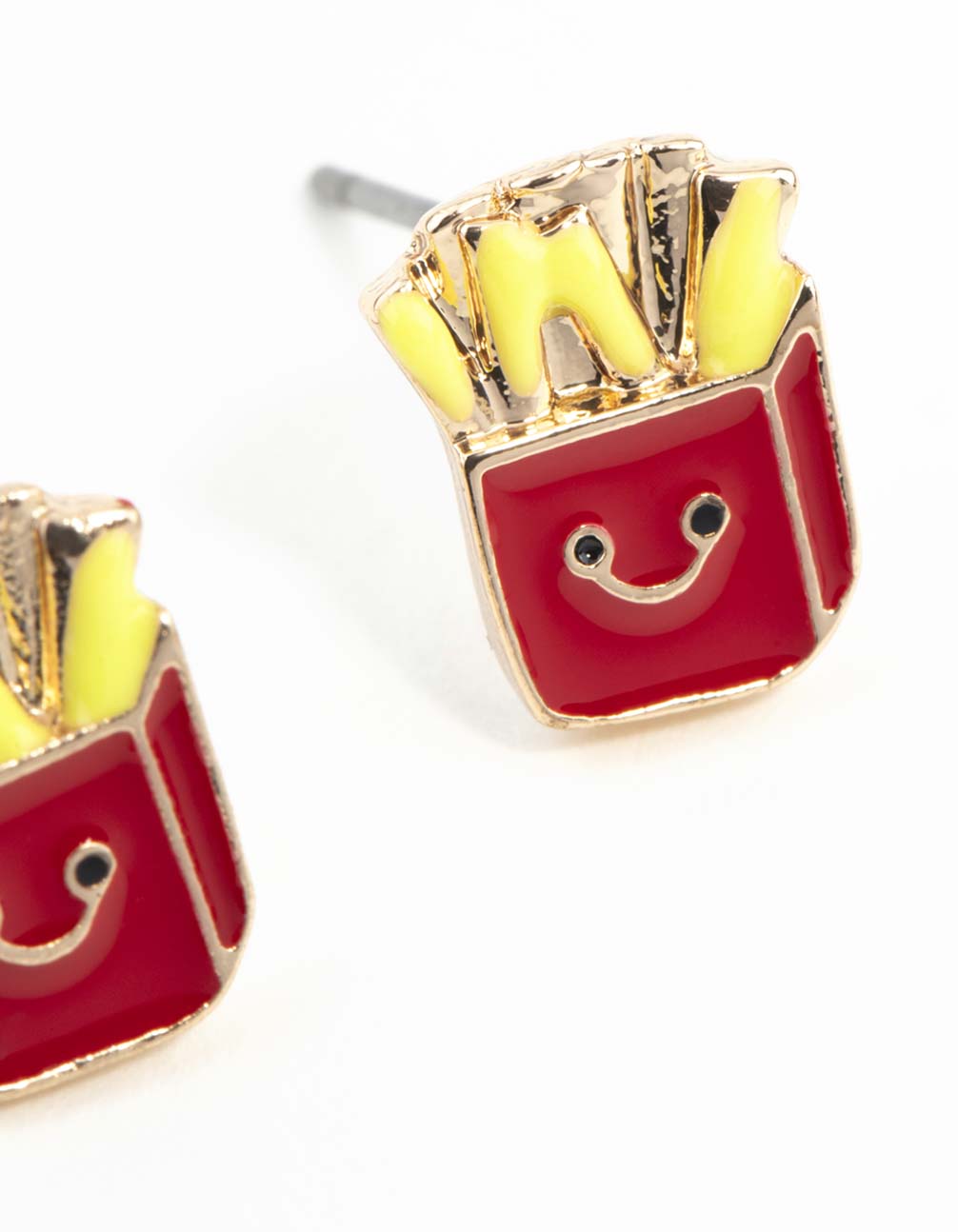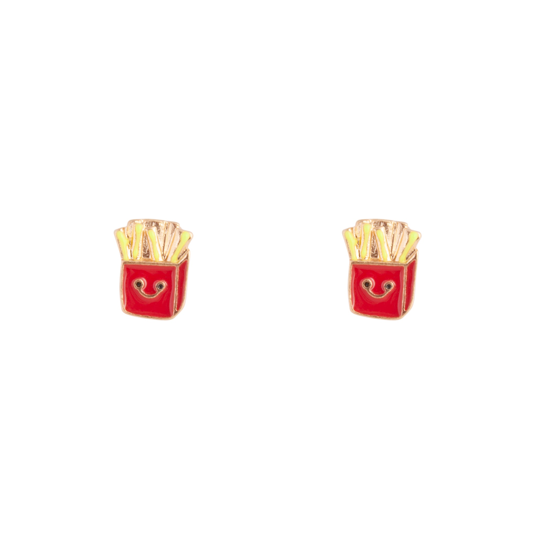 A pair of gold-toned stud earrings in a fries design.