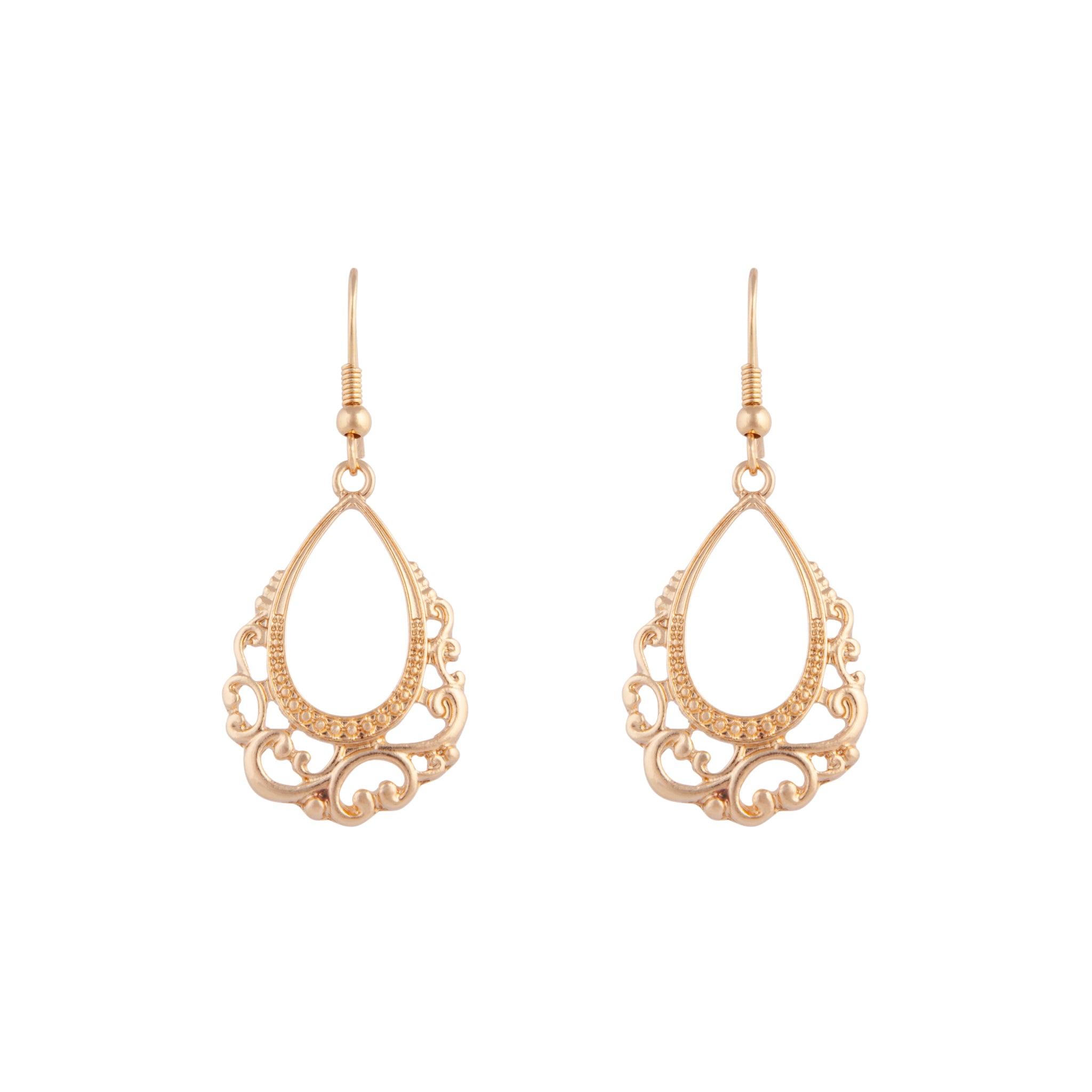 Gold Open Decorative Teardrop Earrings