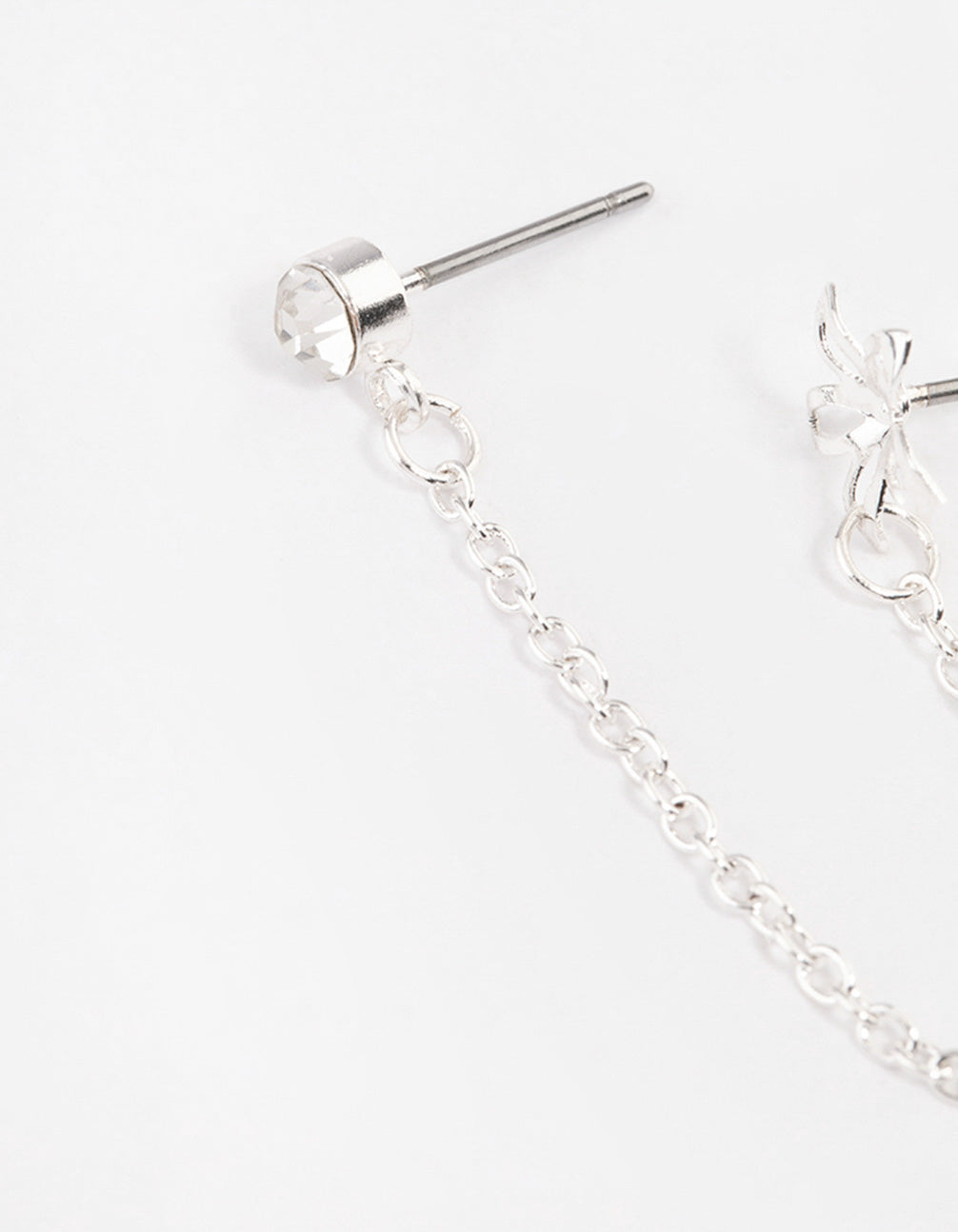 - This set of stud earrings feature a silver setting with a diamante encrusted, flower design for a feminine finish.