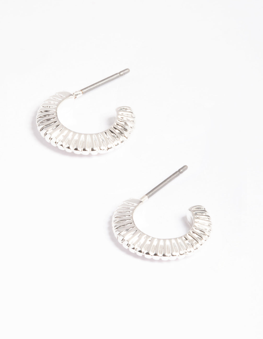 Silver Fan Line Huggie Earrings