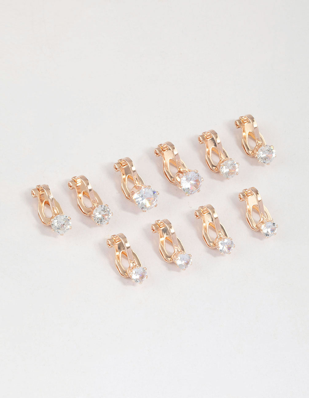 Rose Gold Graduating Diamante Clip On Earrings 5-Pack