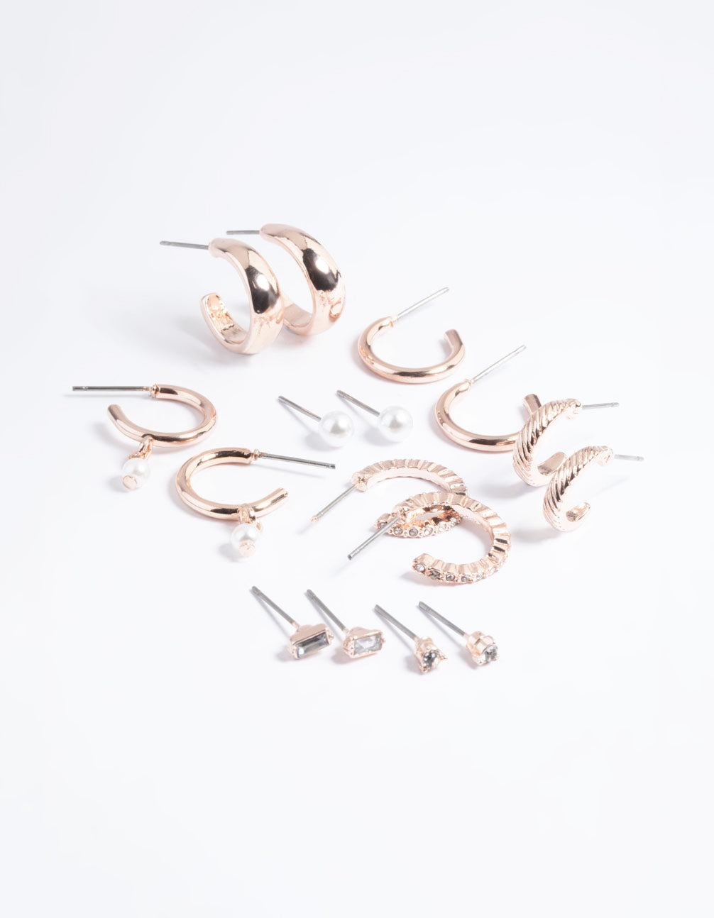Rose Gold Pearl Stud & Hoop Earrings 8-Pack Rose Gold Pearl Stud & Hoop Earrings 8-Pack Rose Gold Pearl Stud & Hoop Earrings 8-Pack