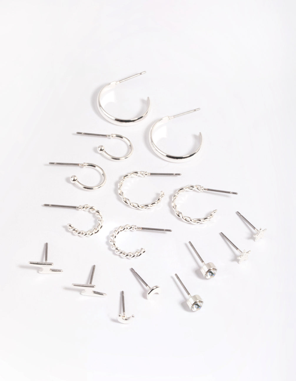 Silver Celestial Stud & Hoop Earring 8-Pack
