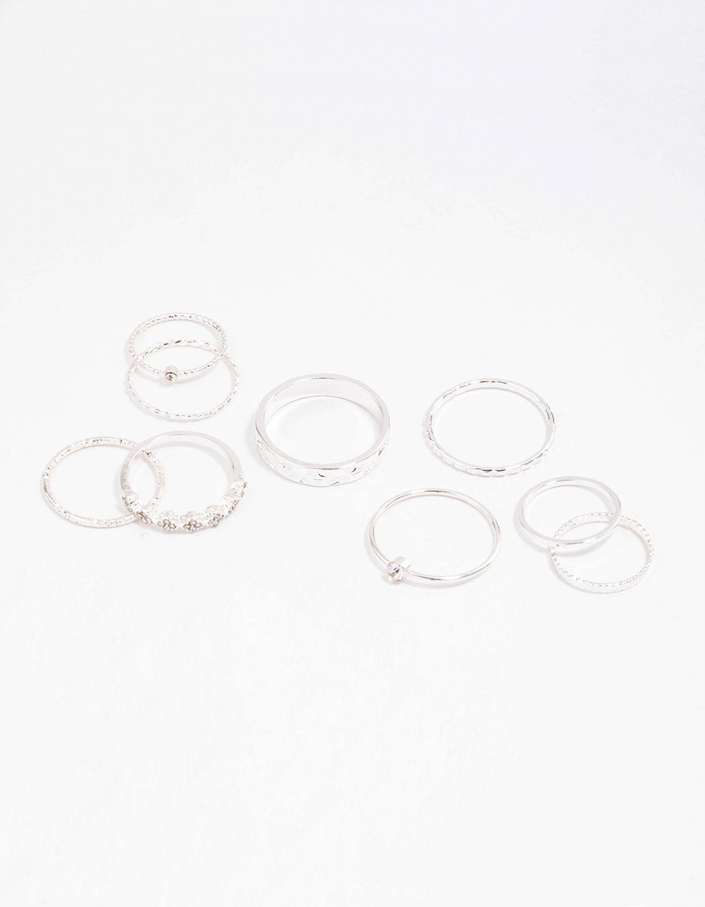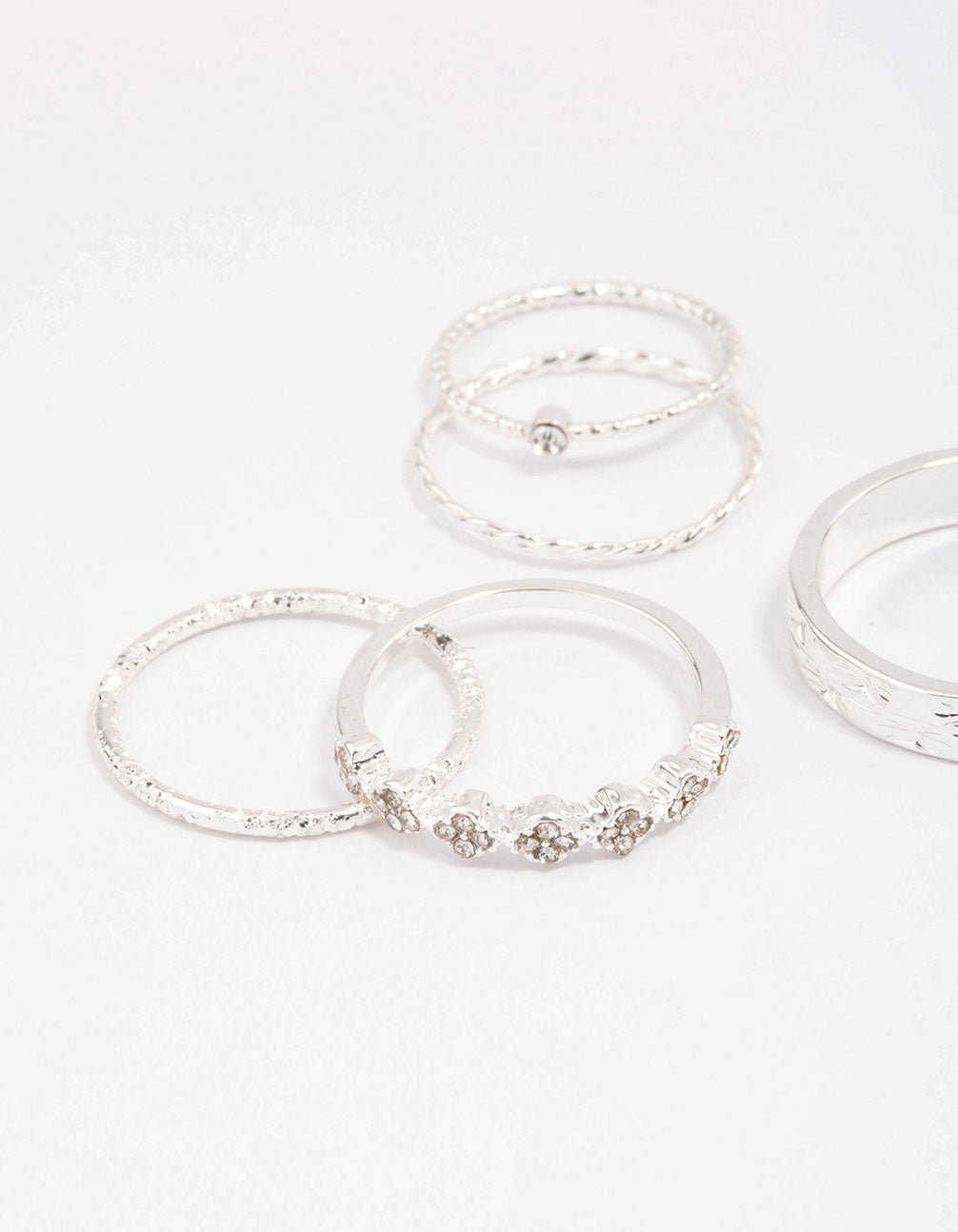 - Maximise your ring stack and embellish your look with this set of dainty, silver-toned flower motif rings.