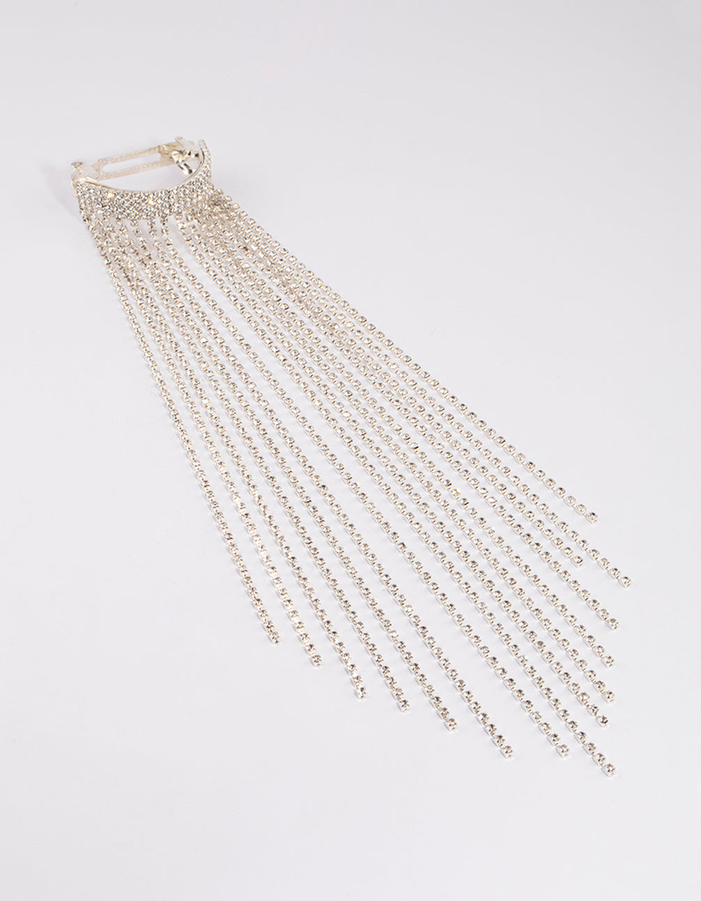 - This silver-toned, pony tail hair clip features strands of waterfall diamantes, perfect for making a statement with a slicked back pony at your next event.