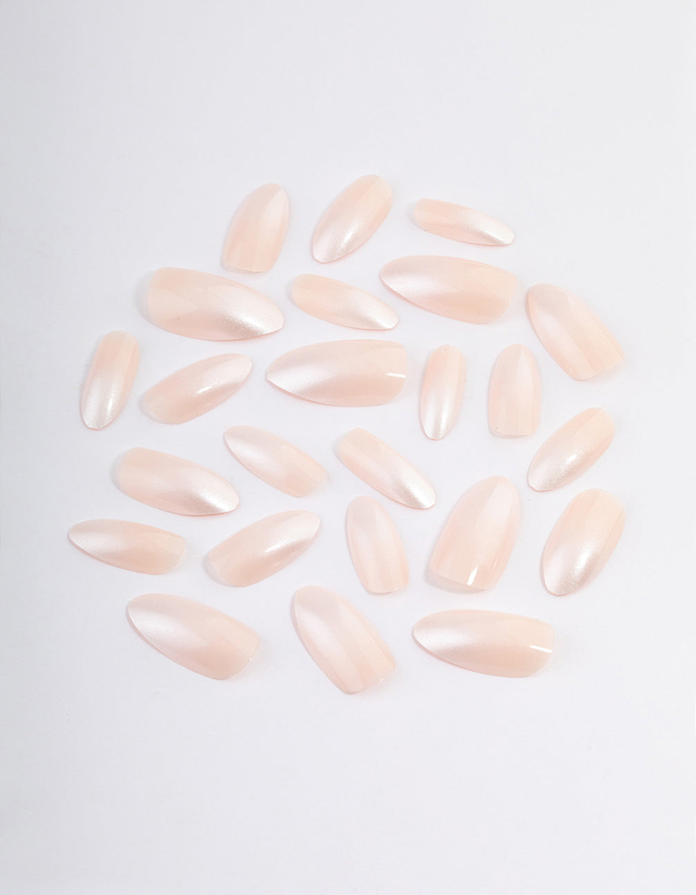 Style these iridescent, pearl coloured press on nails with an adorning ring stack for an on-trend look.