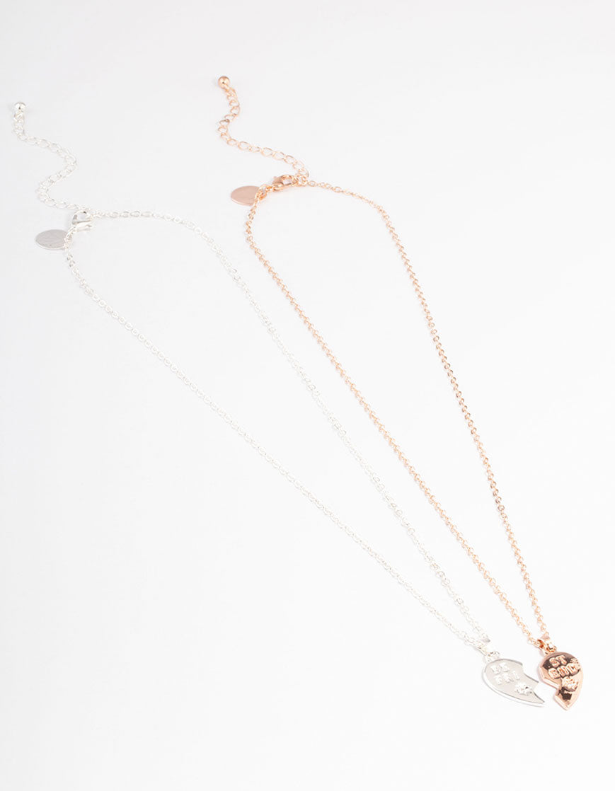 Mixed Metal BFF Diamante Heart Necklace Pack