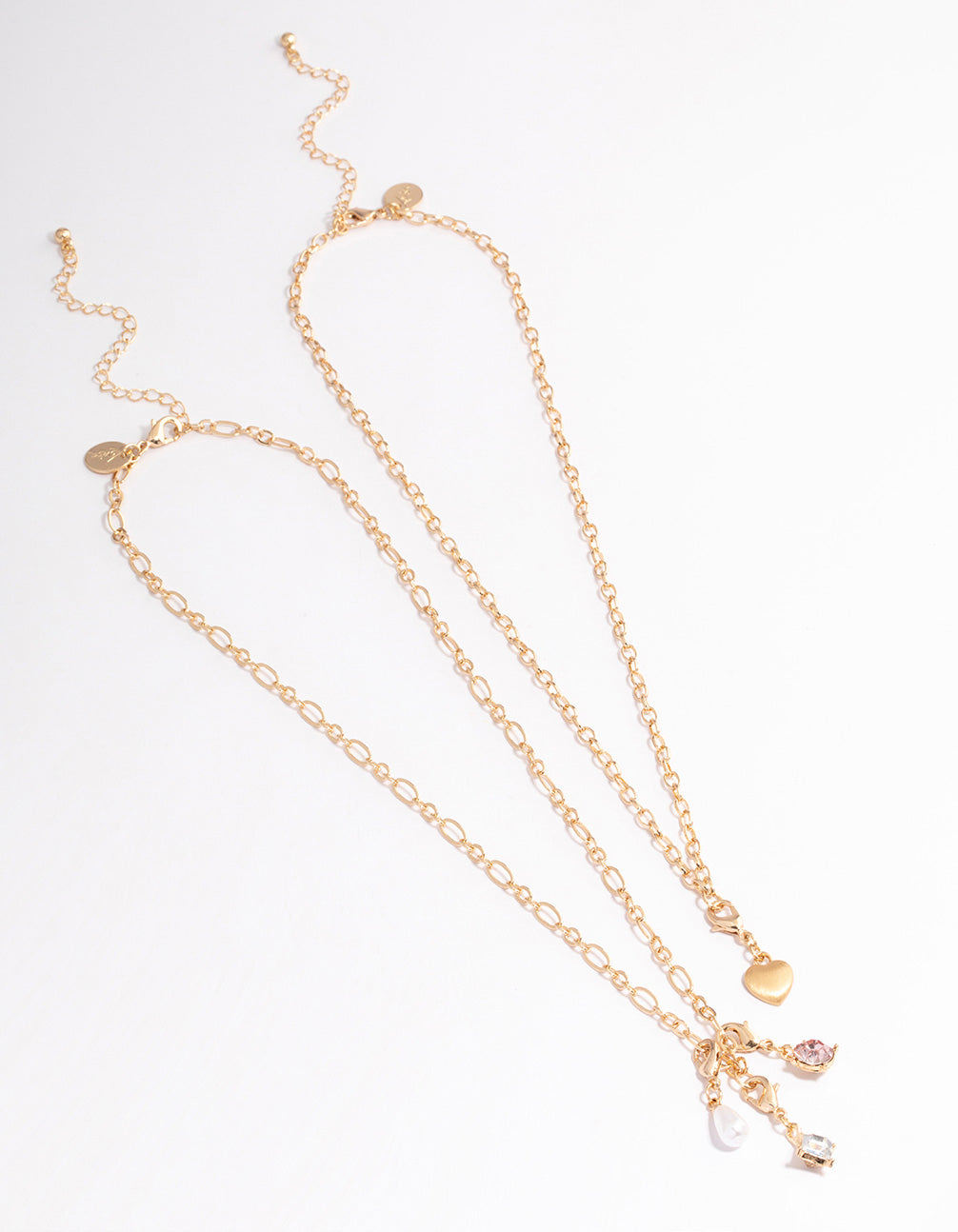 This necklace pack contains two individual charm necklaces, embellished with unique heart charms and pendants for a curated look.