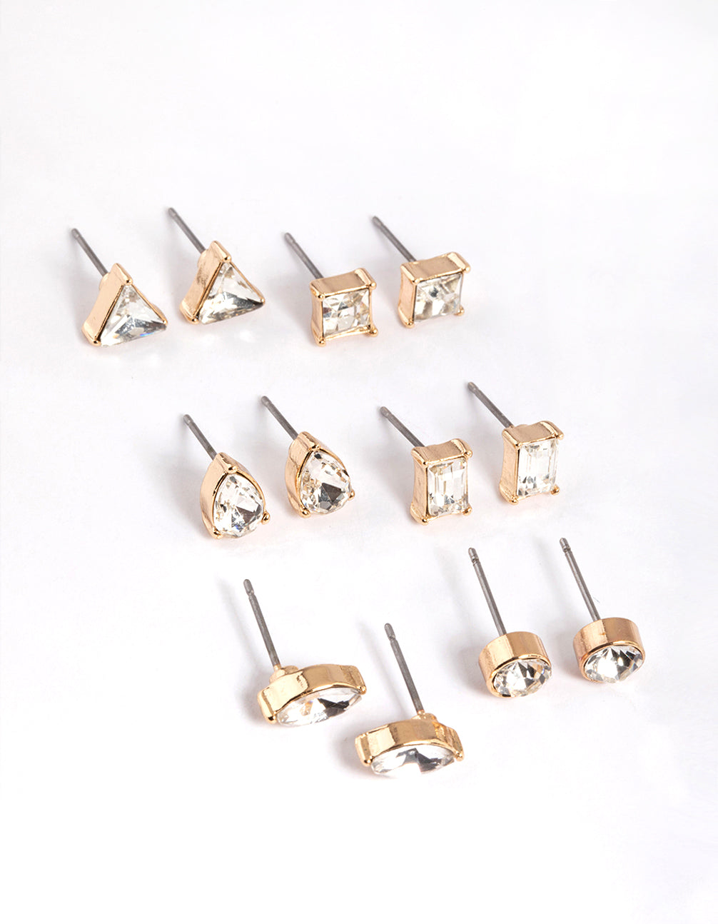 Gold Mixed Cut Diamante Stud Earrings 6-Pack