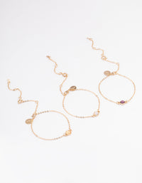 Something special to make you smile! This set includes three gold toned chains that can be worn as bracelets or anklets. Each has a different stone at their centre, in a milky-white, purple or amber hue. This set comes in a pretty presentation box - gift it to someone special or treat yourself!