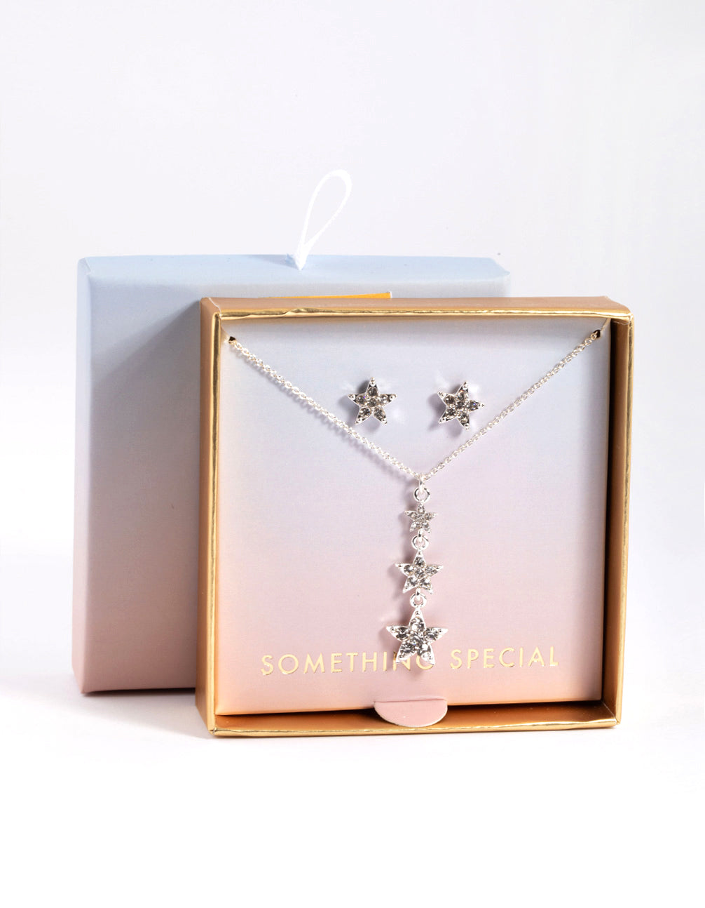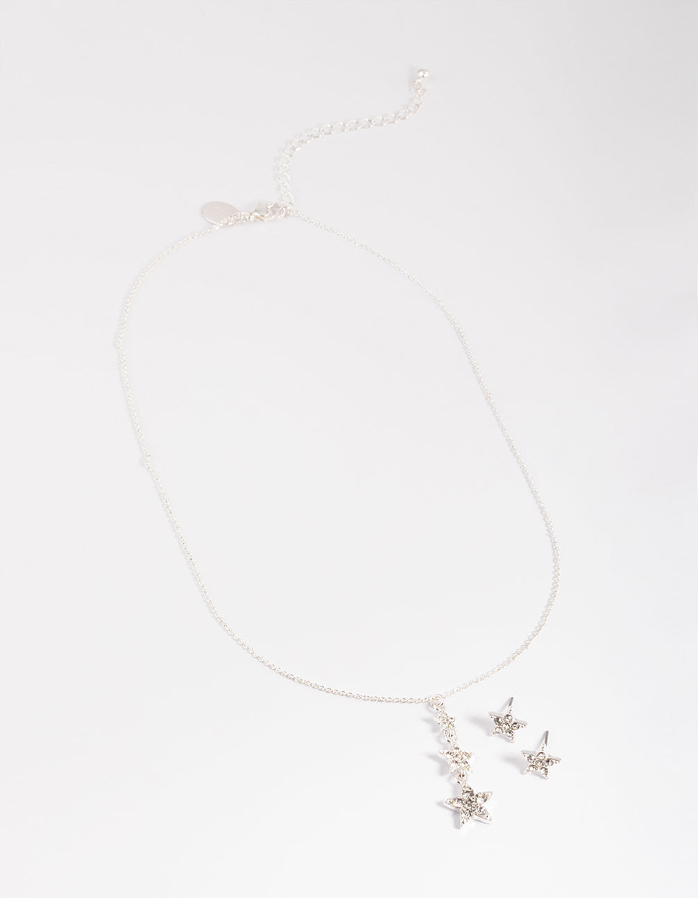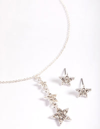 Silver Diamante Star Drop Necklace & Stud Earrings