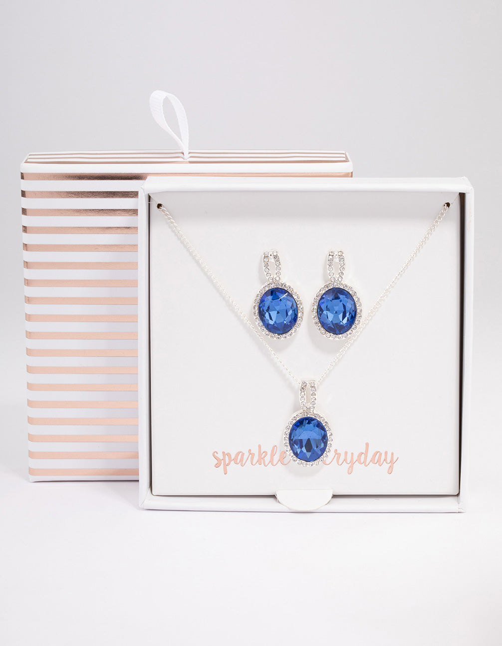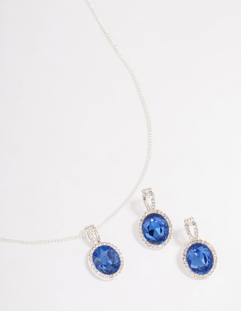 Silver Oval Blue Halo Necklace & Stud Earrings Jewellery Set Silver Oval Blue Halo Necklace & Stud Earrings Jewellery Set Silver Oval Blue Halo Necklace & Stud Earrings Jewellery Set