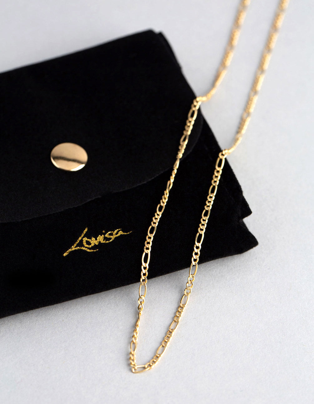 A lovely gold chain adds a delicate touch of luxury to your ensemble. This Lovisa Black Label necklace was made in Italy from fine 9ct gold. It features a beautiful Figaro chain design. Pair with our 9ct Gold Figaro Chain Bracelet, layer it with other pieces or go for simple elegance and wear it on its own.