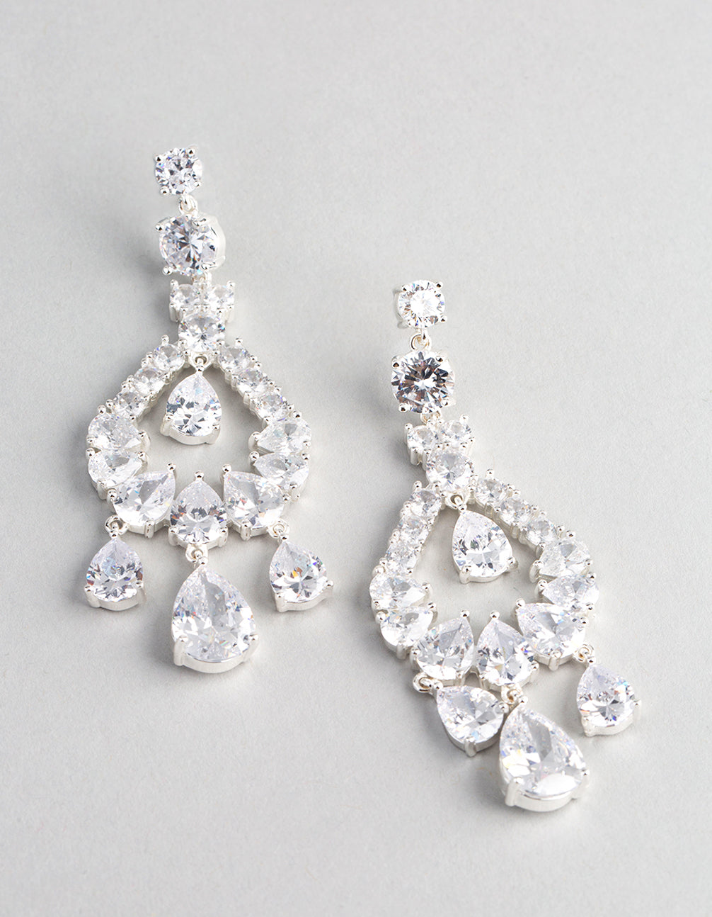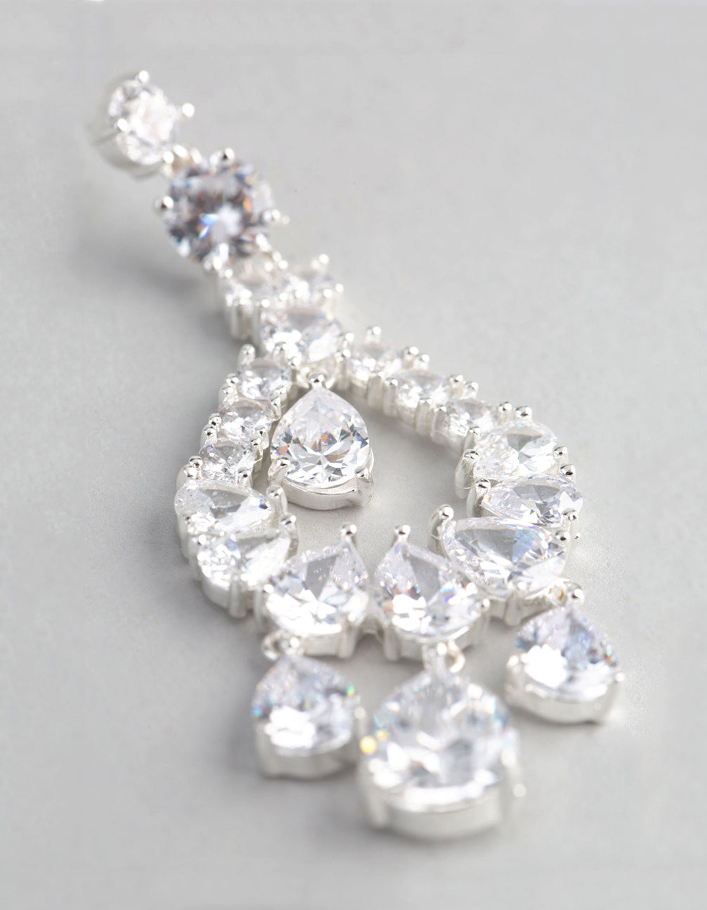 Silver Cubic Zirconia Statement Teardrop Earrings