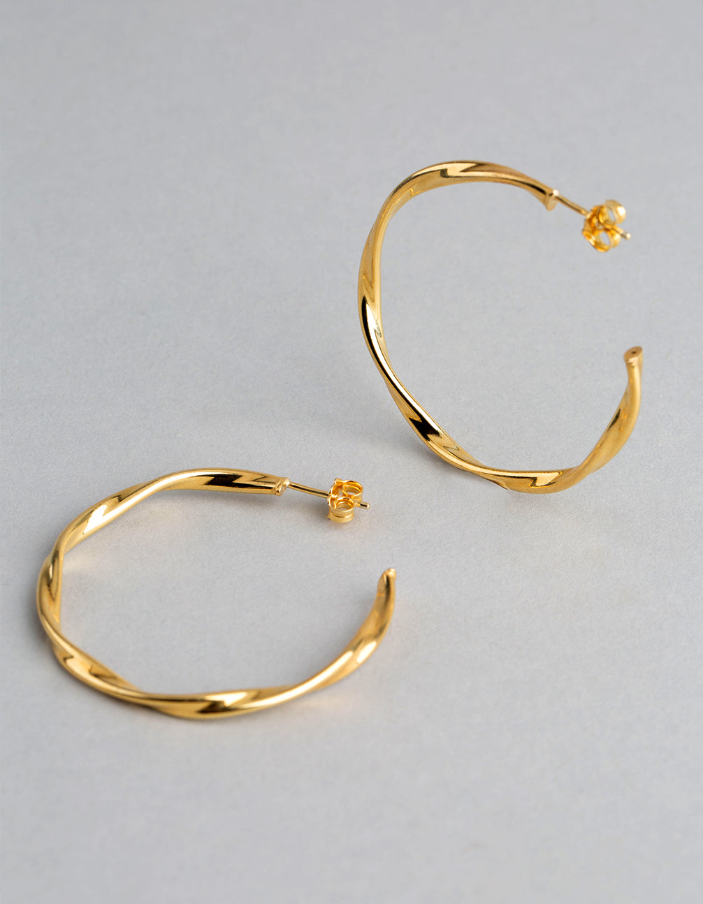Gold Plated Sterling Silver Medium Twist Open Hoop Earrings