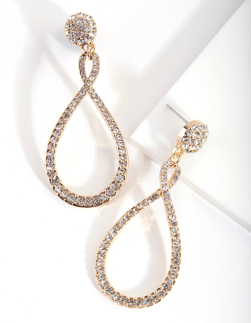 A fun pair of fashion earrings are an easy way to spice up your daily ensembles! These gold-tone earrings boast a diamante twist drop design. Style with dainty gold-toned accessories to compliment these bold and beautiful diamante statement earrings.