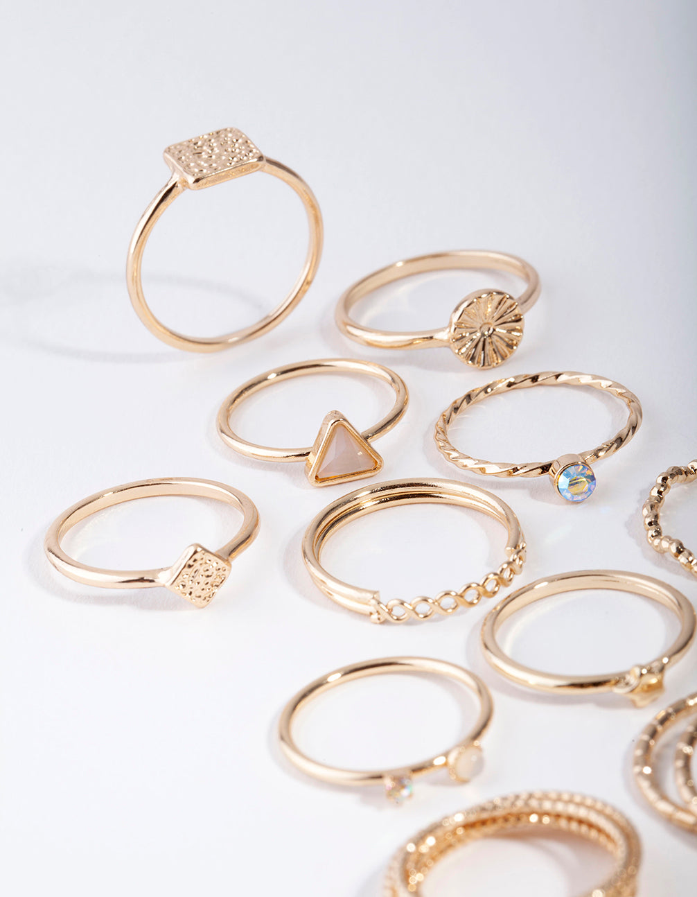 Raise your ring game with Lovisa ring sets! This pack includes 26 gold-toned rings which could be worn with anything. A perfect ring set for stacking, mixing and matching!