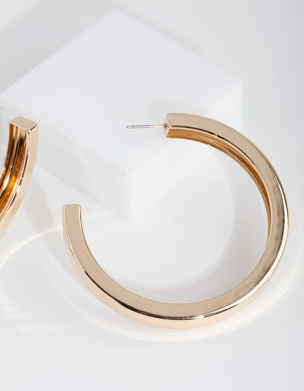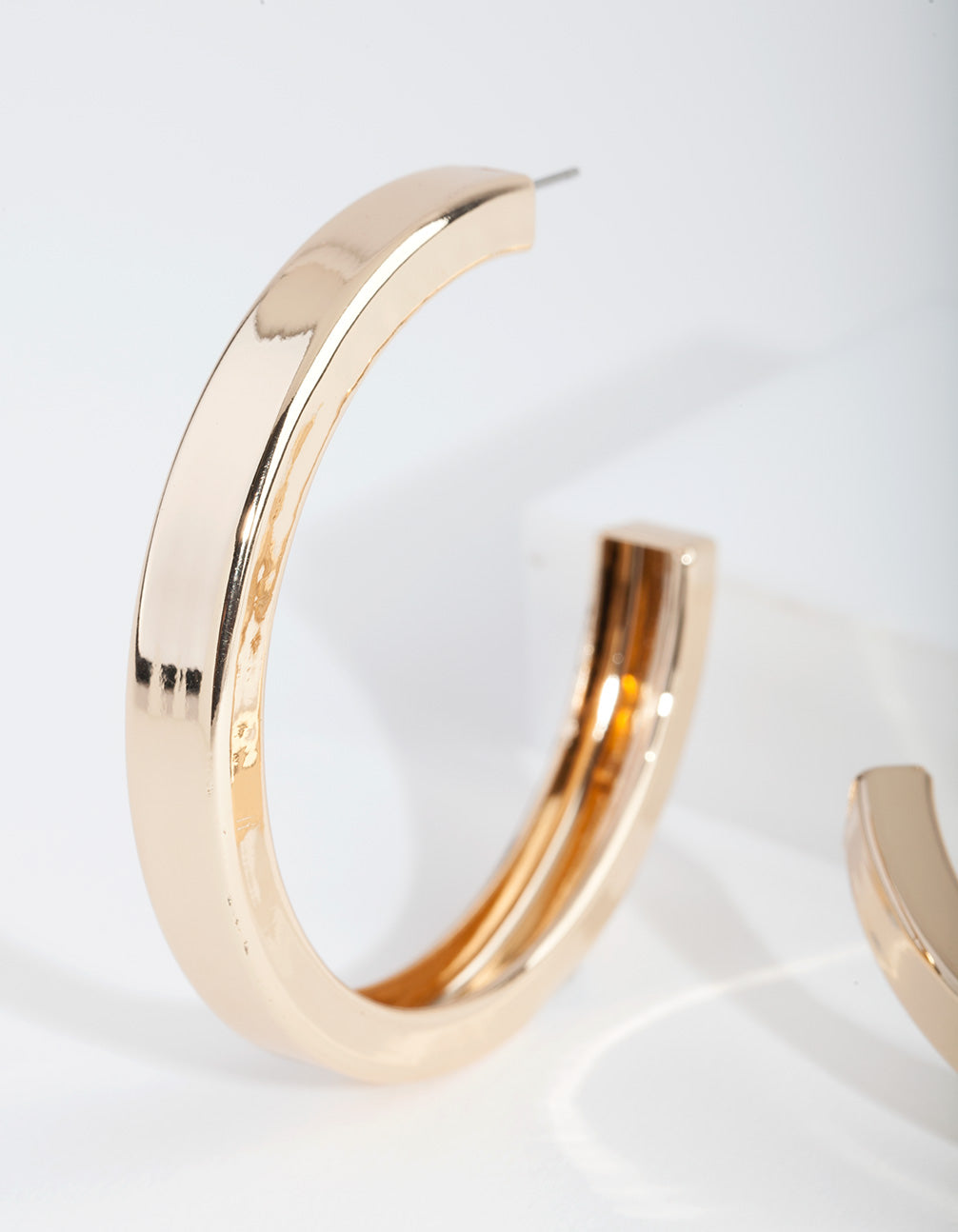 A fun pair of fashion earrings are an easy way to spice up your daily ensembles! This pair of hoops feature a polished gold-toned design with a square edge.