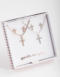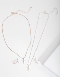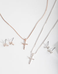 Mixed Metal Diamante Cross Jewellery Set