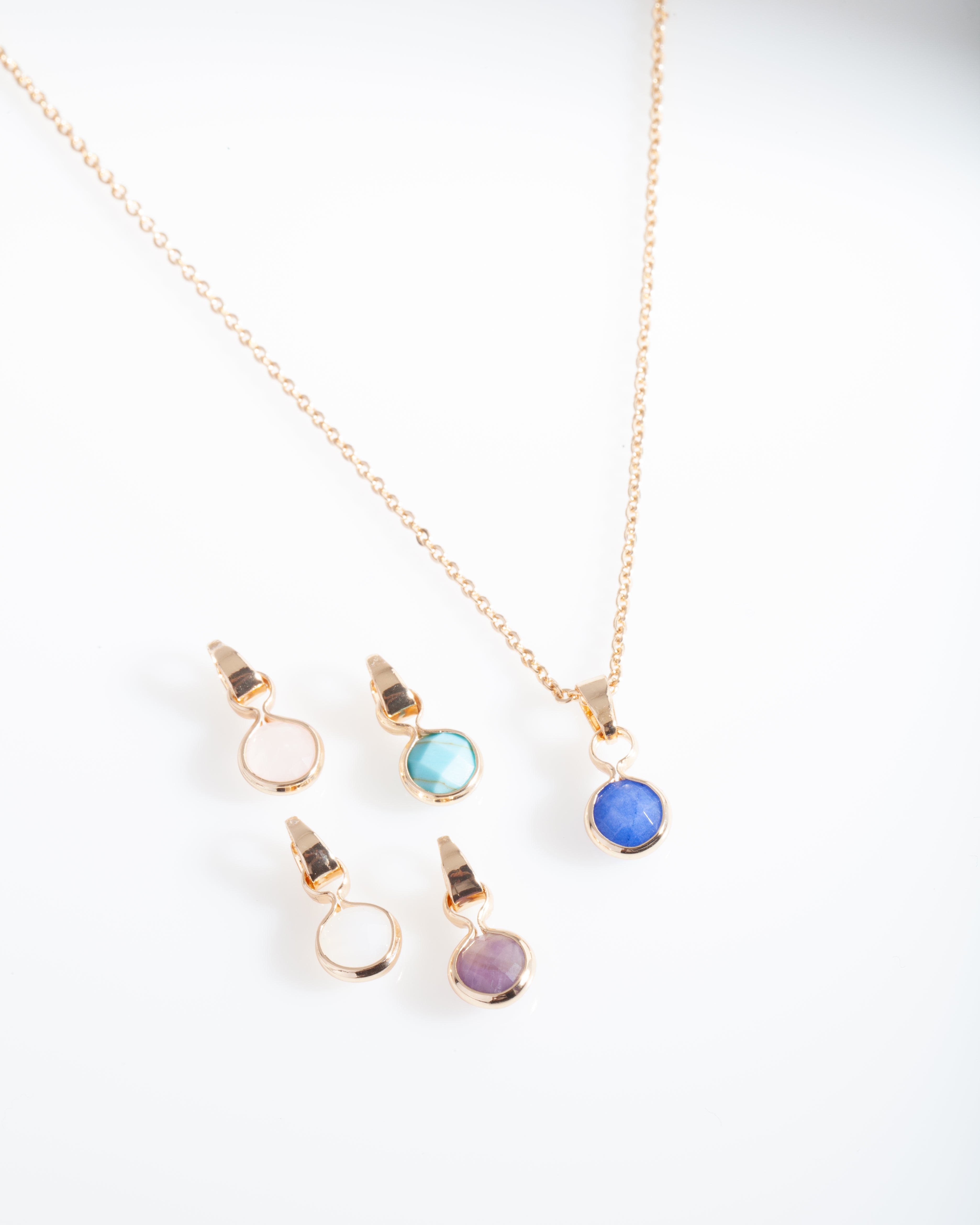Layer it up with finer chains or wear alone for a considered look. Nearly every outfit can be elevated with neckwear. This necklace features a gold-toned setting with semi-precious charms that you can use to customise for your style.