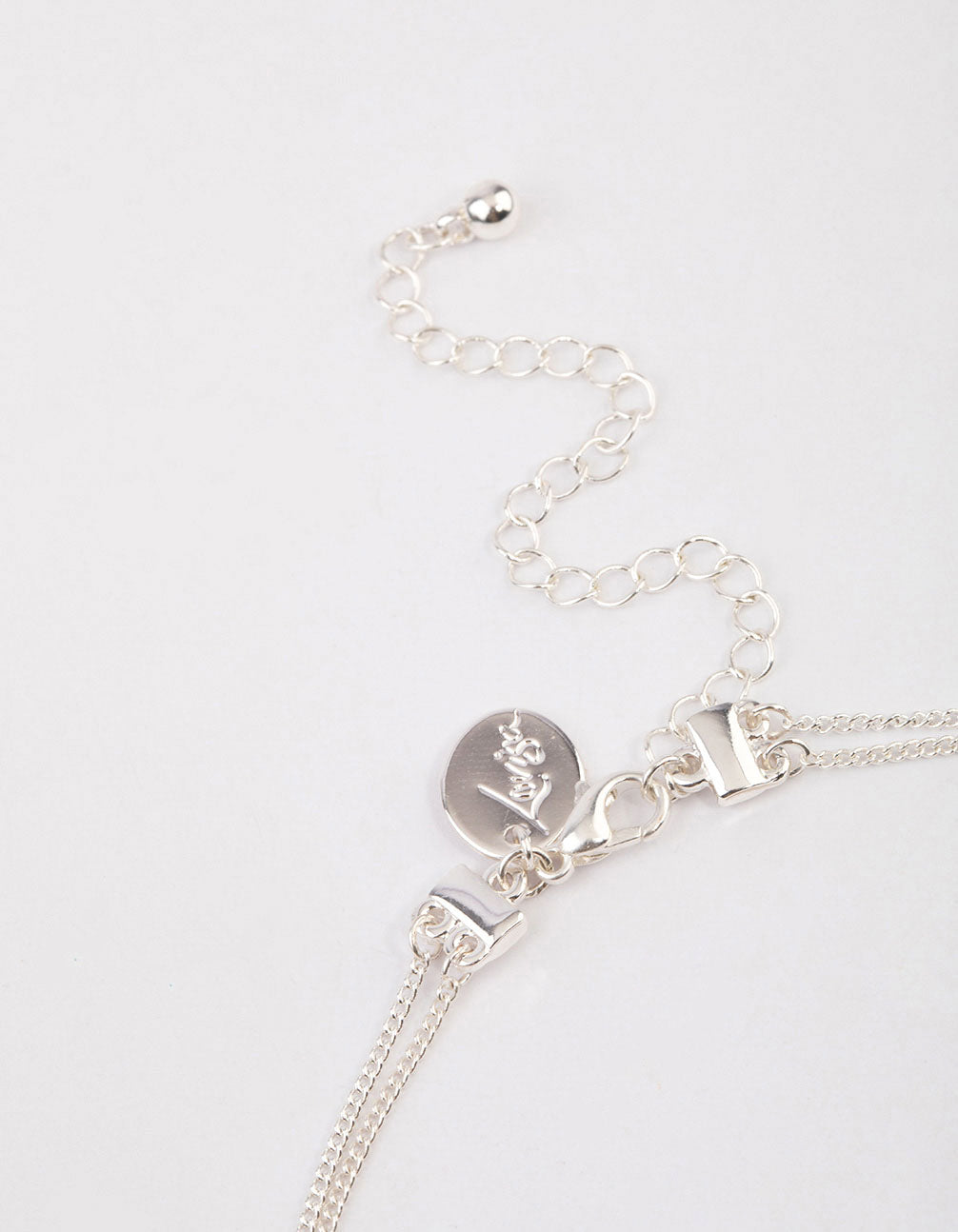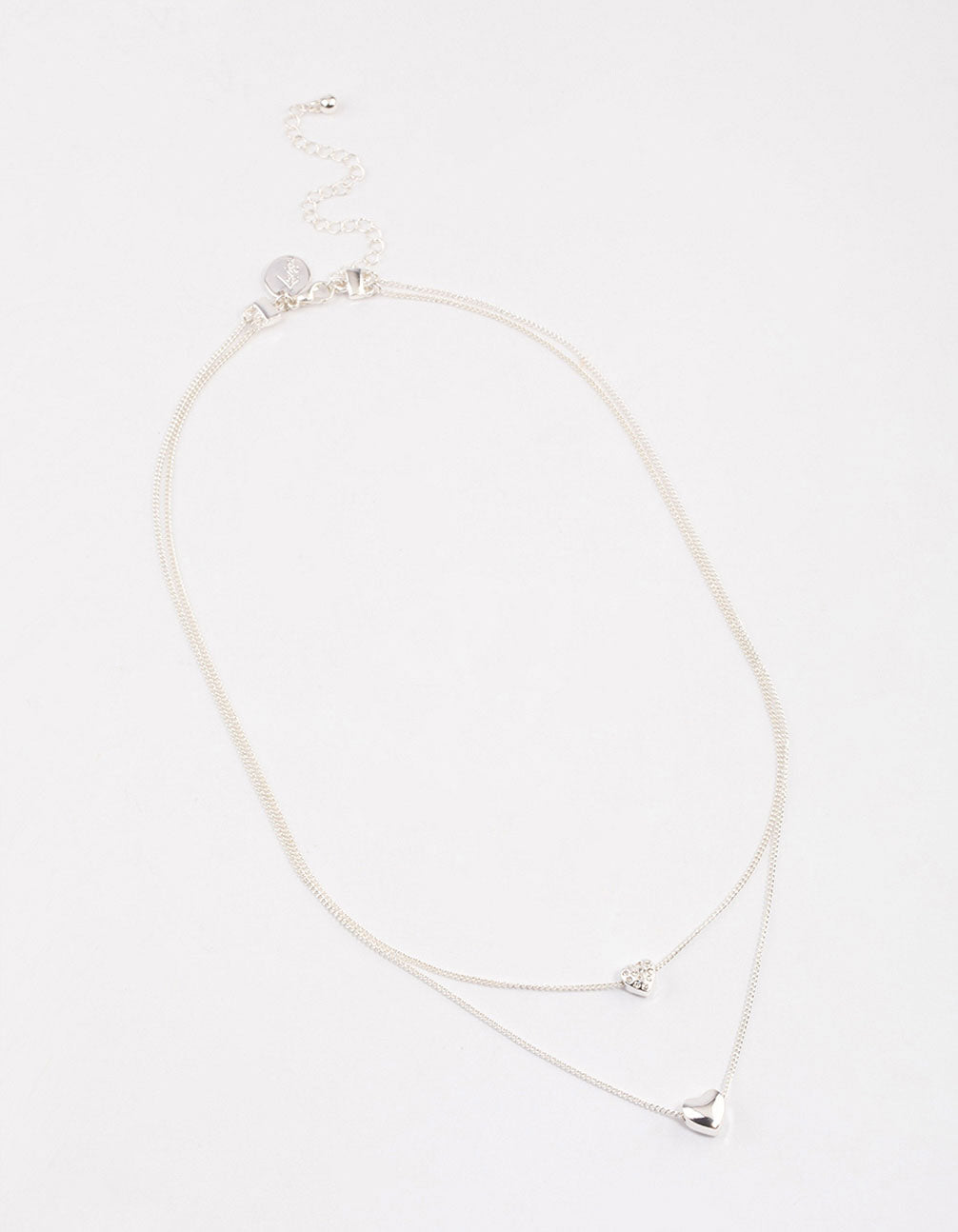 - Style this Silver Double Diamante Heart Necklace with a dainty choker and pop it back in its pouch when you're done styling.
