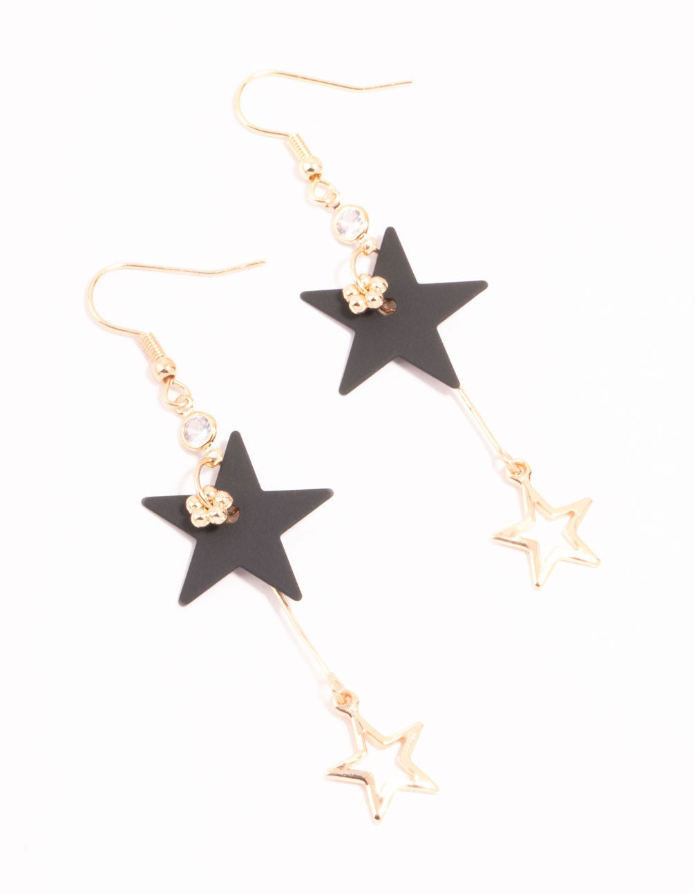 Bring celestial glamour to your look with these drop earrings. They feature an edgy mix of black stars and gold-toned cut-out stars for an out-of-this-world look.