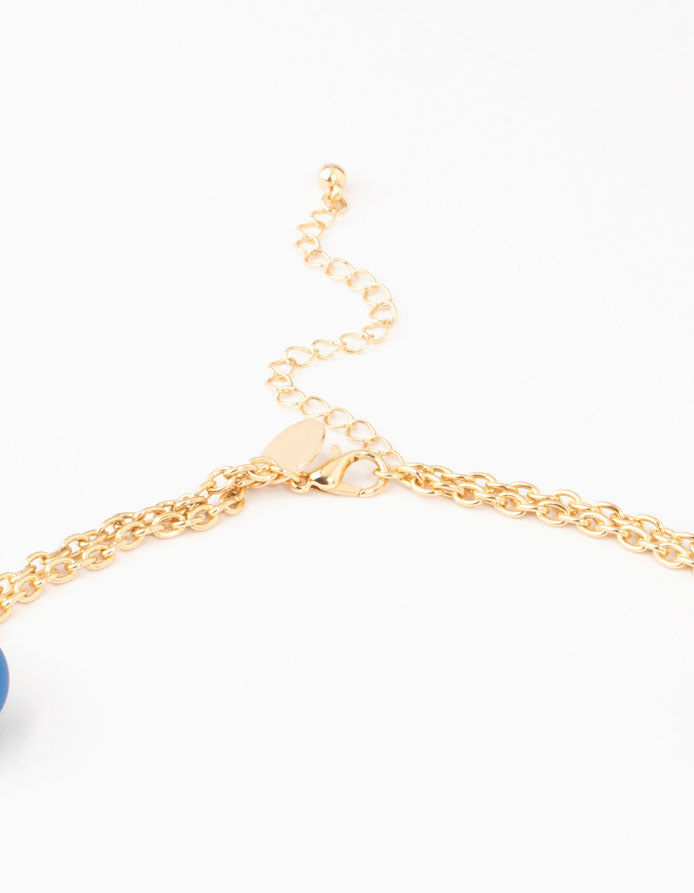 Embrace coastal glam with this stunning bead necklace. Featuring a sleek gold base paired with vibrant blue beads, it captures the essence of the ocean and adds a touch of seaside elegance to any look. Perfect for bringing a hint of beachy charm.