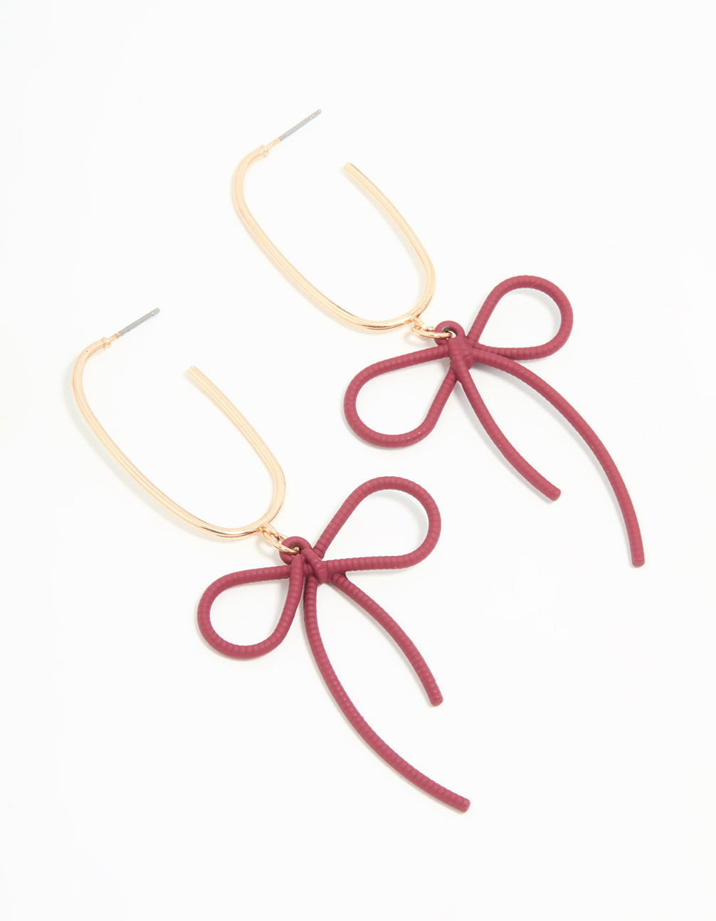 • Gold Burgundy Bow Drop Earrings - link has visual effect only