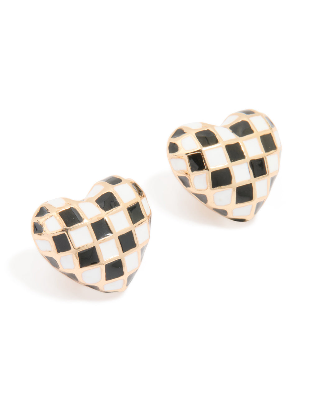 Gold Chess Heart Stud Earrings