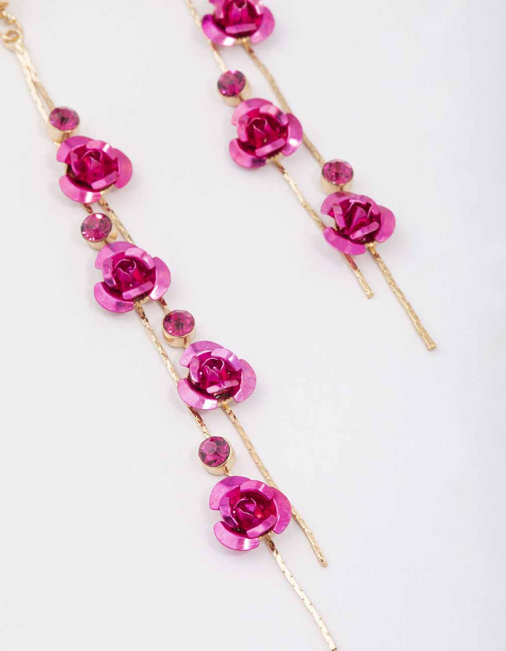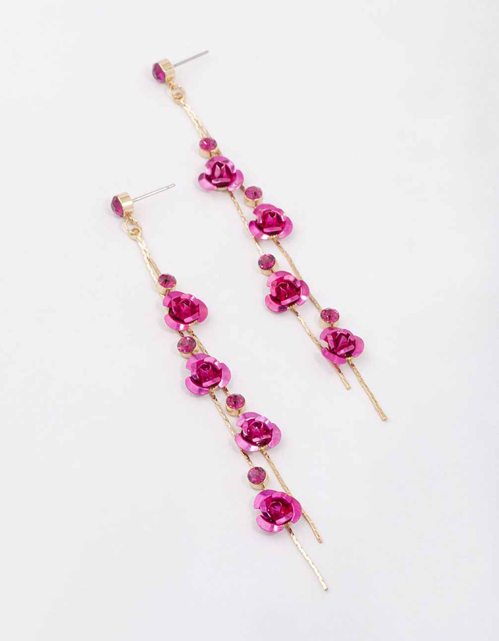 Gold Climbing Hot Pink Rose Drop Earrings