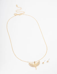 Gold Plated Cubic Zirconia Angel Necklace & Stud Earrings Set