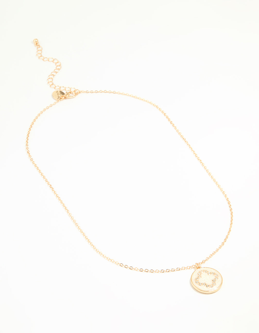 Gold Cubic Zirconia Flower Coin Pendant Necklace