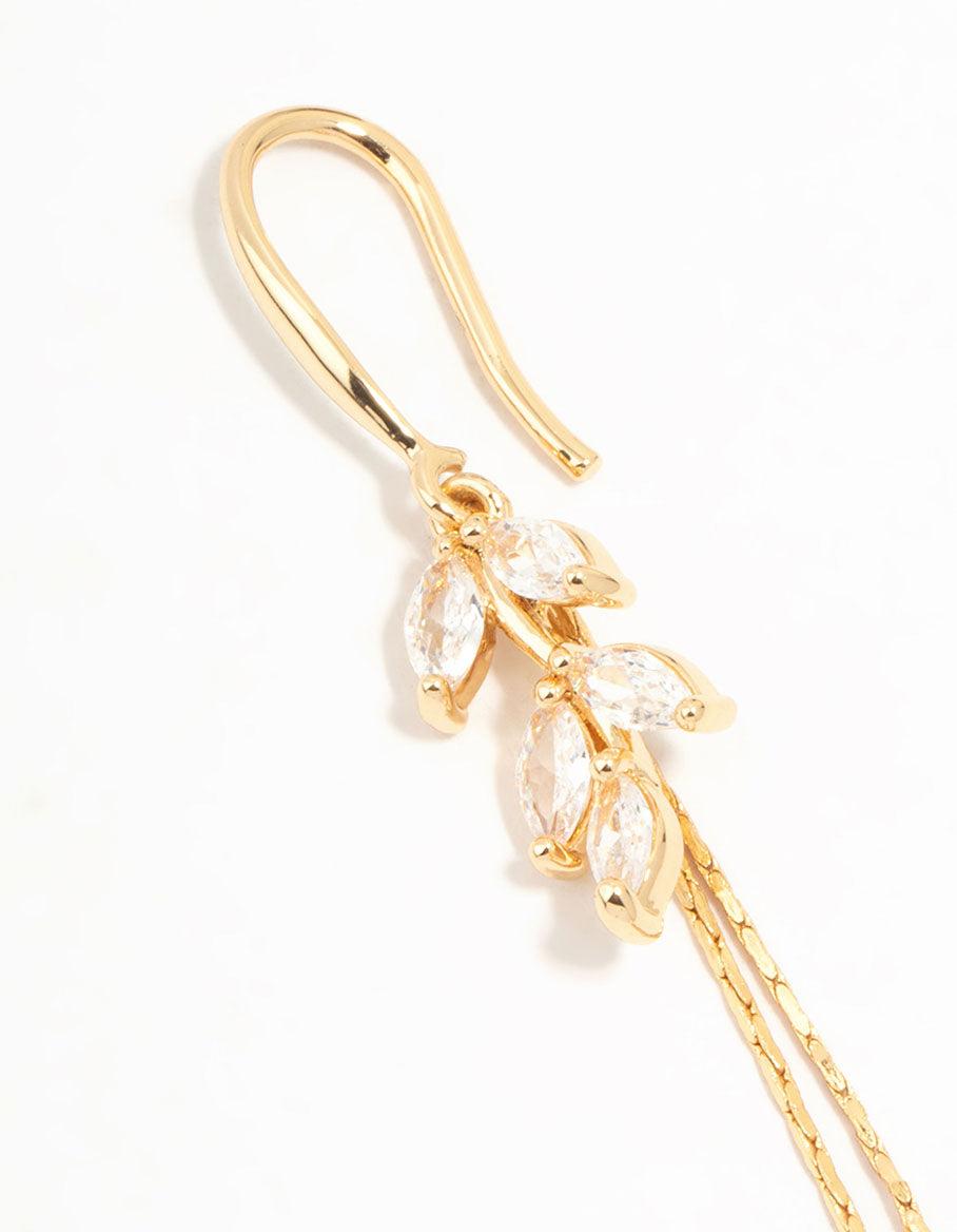Gold Cubic Zirconia Leaf & Pearl Drop Earrings