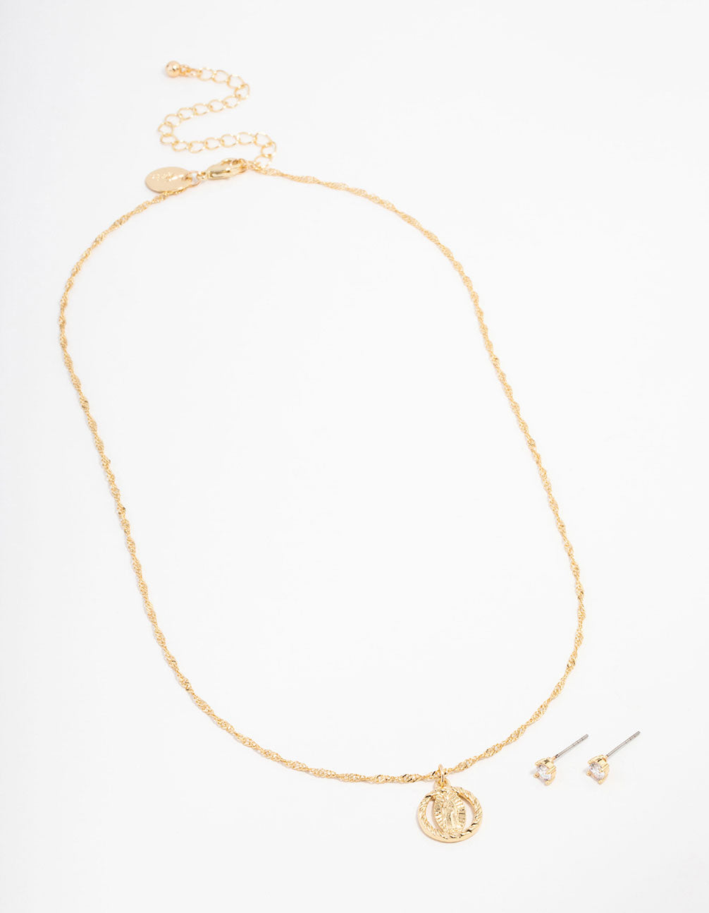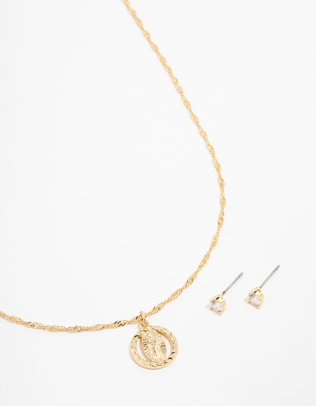 Gold Plated Cubic Zirconia Mary Round Necklace & Stud Earrings Set Gold Plated Cubic Zirconia Mary Round Necklace & Stud Earrings Set Gold Plated Cubic Zirconia Mary Round Necklace & Stud Earrings Set