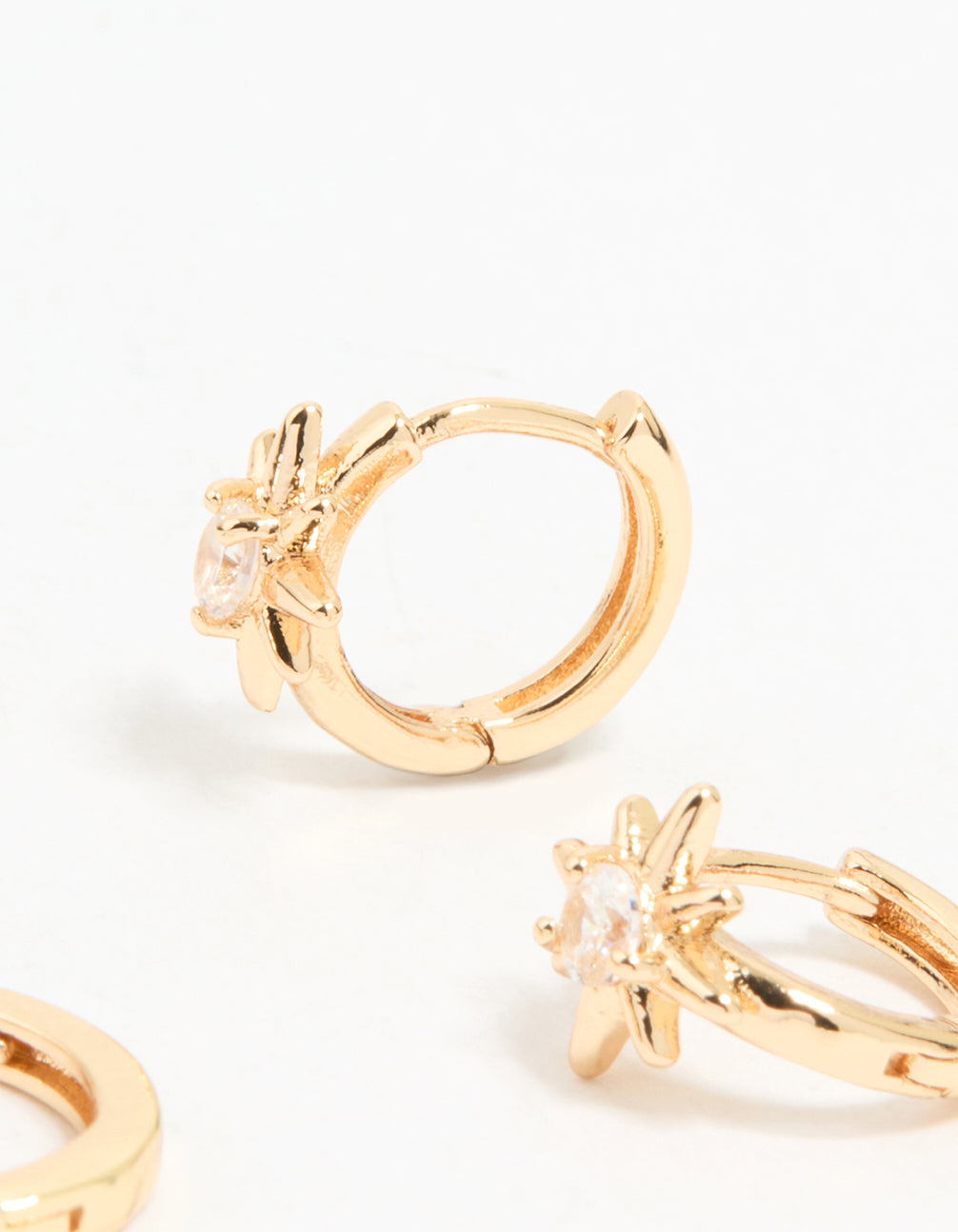 Gold Cubic Zirconia Mixed Cross Huggie & Stud Earrings 3-Pack