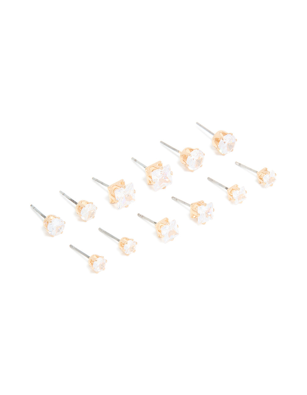 Gold Cubic Zirconia Multi-Sized Stud Earrings 6-Pack