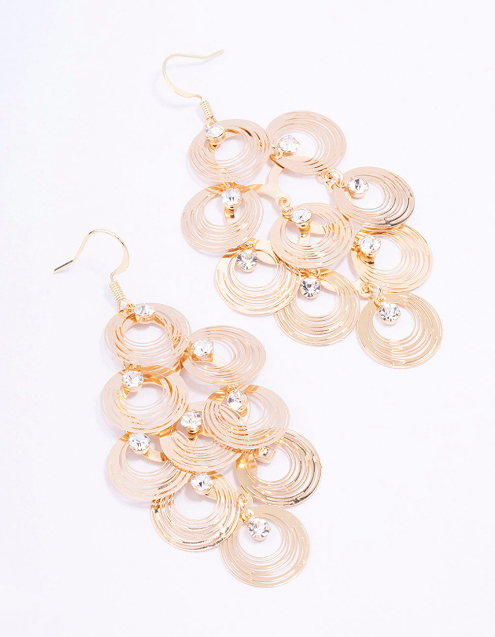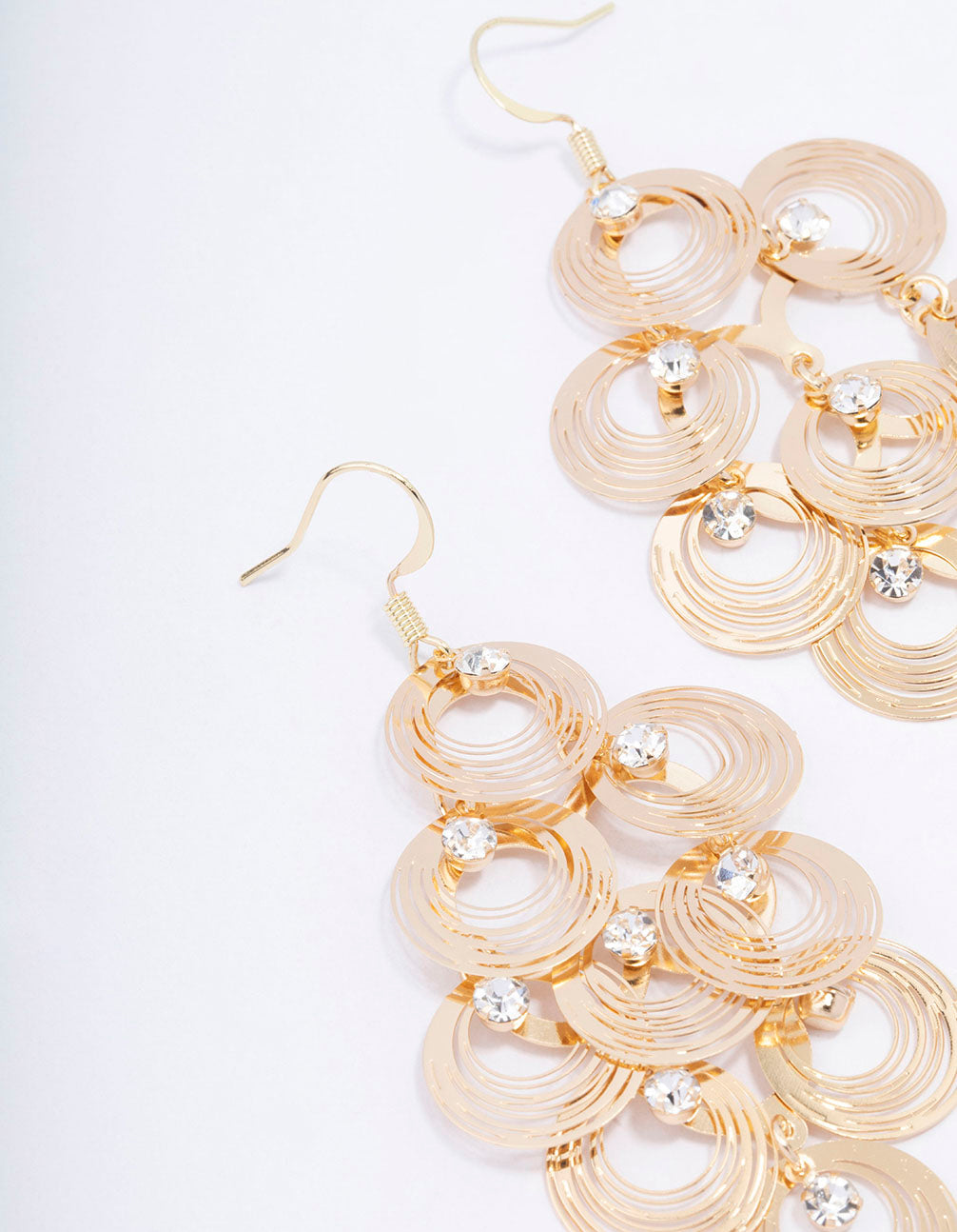 Style these Gold Diamante Disc Drop Earrings with a set of simple studs for a layered look.