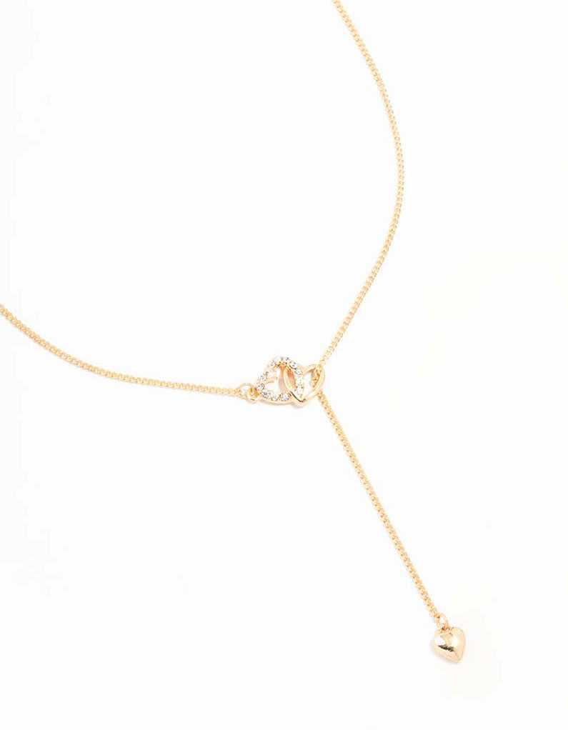 Gold Diamante Heart Link Y-Necklace