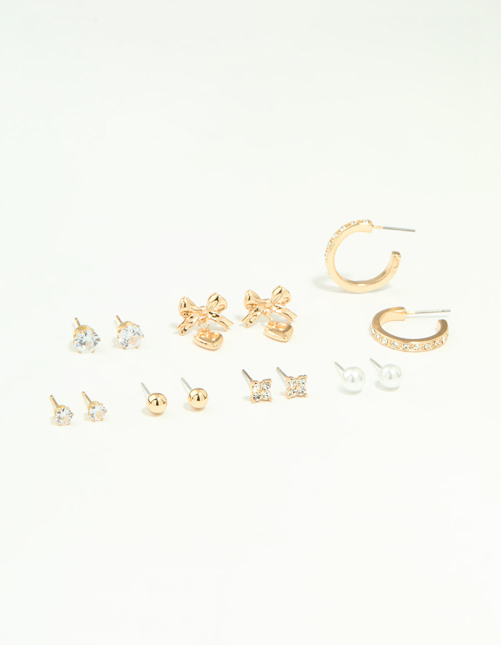 Gold Diamante Hoop & Stud Earrings 7-Pack