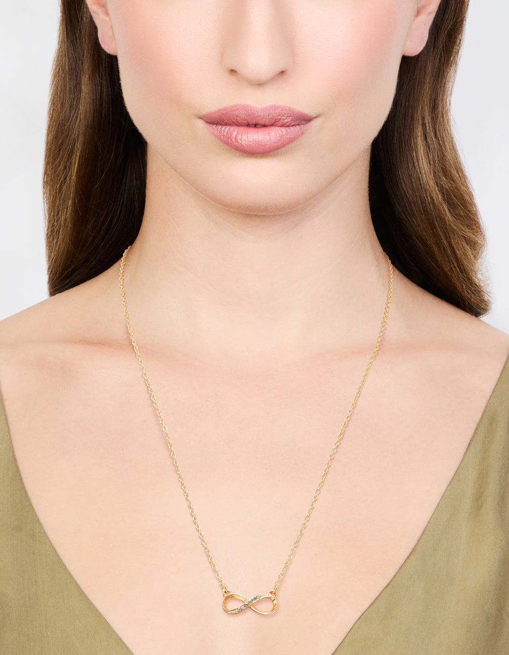 Show your forever love with this dazzling gold-toned necklace! Featuring a sparkling diamante infinity pendant, it's perfect for gifting or adding a touch of elegance to any outfit.